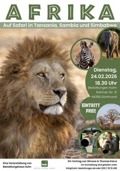 Am 24. Februar besuchen uns Simone und Thomas Karcz und erzählen von ihren spannenden Reisen durch Afrika. Ein Vortrag mit atemberaubenden Bildern, toller Musik und vielen Infos erwartet Sie.